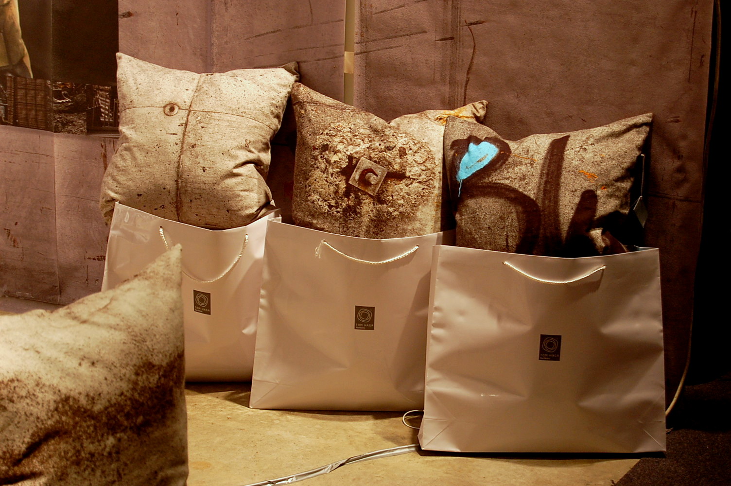 Heldigvis er det jo litt for enhver smak her på messen, så om du ikke er så opptatt av design, kan du kose deg likevel. Riviera Maison har en stor stand med massevis av julepynt ( bildet over) og Concrete Wall (under) er på plass med sine betong-lookalike tapeter og gøyale puter!