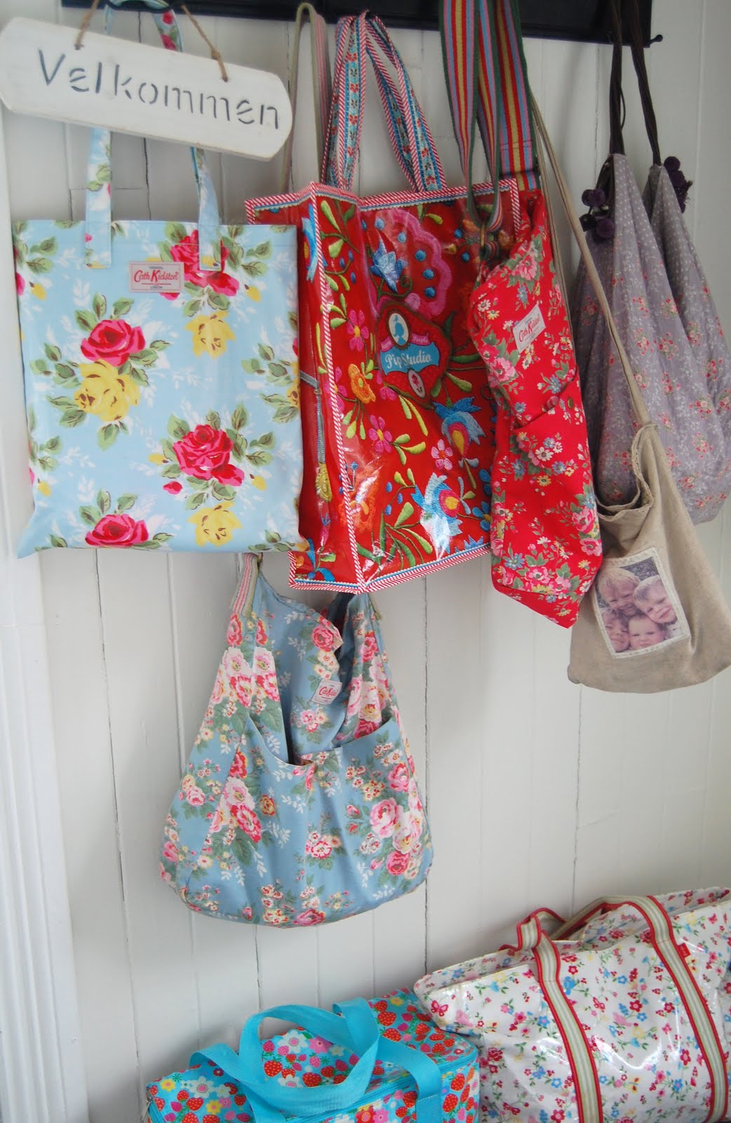 Emmeline har ikke fått med seg at jentene har lånt passende vesker da de skulle reise på ferie. Men det hadde de altså:) Det verste av alt er at jeg har så mange blomstervesker, at jeg knapt nok merker om noen forsvinner -Det var faktisk enda flere enn disse som er med på bildet, og enda flere ventet her hjemme!